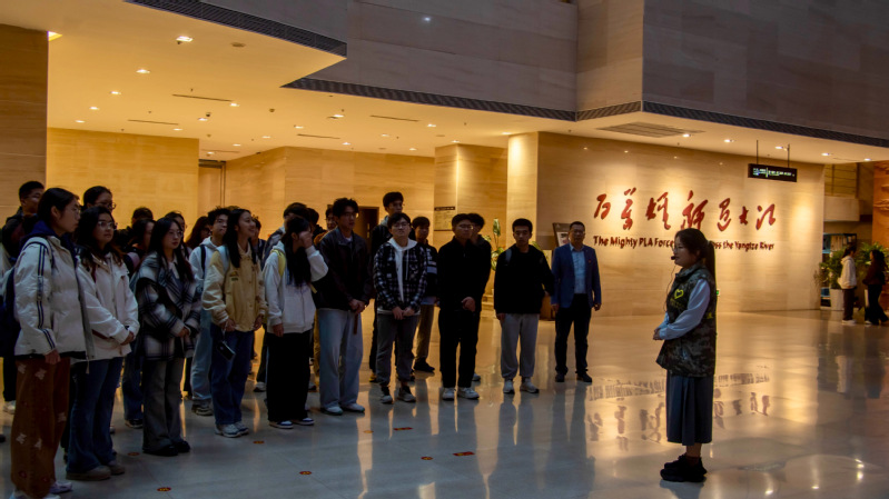 随后全体学员分成两个小组,在纪念馆讲解员的引导下,循着历史脉络,依次参观了各个展区。那些历经风雨洗礼却依旧熠熠生辉的老物件、那些记录着无数英勇事迹的文字图片、还有那些仿佛能让人穿越回那个战火纷飞年代的真实再现场景……所有元素交织在一起,为我们勾勒出了一个关于渡江战役及其背后无畏战士们的宏伟画卷,展现了渡江战役的壮阔历程与革命先辈们为国家解放、人民幸福挺身而出的英雄壮举。同学们认真聆听讲解,不时驻足凝视、交流感悟,深刻体会到革命胜利的来之不易与中国共产党人的责任担当。