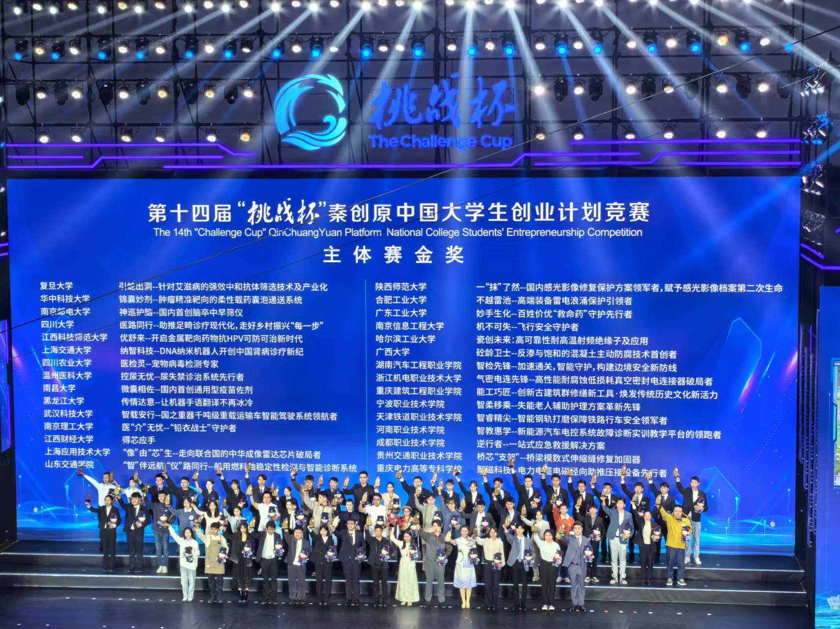 据悉,本届“挑战杯”中国大学生创业计划竞赛共吸引来自2700余所高校的300多万名学生参与,累计提交39万余个创新创业项目。经过校级初赛、省级复赛,共有来自412所国内高校,14所国际高校的839个项目进入全国决赛终评,最终拟评选产生金奖项目280个、银奖项目559个、铜奖项目1559个(其中,专项赛金奖100个、银奖200个、铜奖300个)。