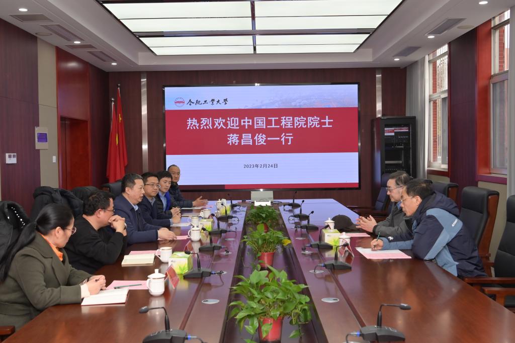 陈刚对蒋昌俊一行表示热烈欢迎,并介绍了学校的历史沿革和发展情况。陈刚指出,建校70余年来,学校深怀“工业报国”之志,扎根江淮大地办大学,主动对接国家重大战略需求和地方经济发展实际需要,为国家和地方经济社会发展尤其是工业化建设作出了重要贡献。他希望蒋昌俊院士一如既往支持合工大发展,强化人才培养、助力学科建设,着力促进学校创新体系构建和创新能力提升,为全面建设社会主义现代化国家和五大发展美好安徽贡献更大力量。