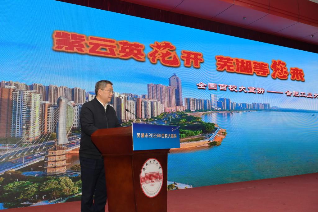 郑磊在致辞中向芜湖市委市政府对学校的关心支持表示衷心感谢,向参加此次宣讲招聘的用人单位和毕业生表示热烈欢迎,并介绍了学校的基本情况和最新办学成果。郑磊指出,建校70余年来,星空游戏官网app始终以“工业报国”为己任,扎根中国大地办大学,为国家经济社会发展尤其是工业化建设作出了重要贡献。近年来,学校坚持以习近平新时代中国特色社会主义思想为指导,深入实施“立德树人、能力导向、创新创业”三位一体星空彩票app买彩票集成体系,人才培养质量持续提升,毕业生深受社会青睐和用人单位好评;一流学科建设成效显著,高质量完成首轮“双一流”建设任务,顺利进入新一轮“双一流”建设高校行列;承接国家重大重点项目、获批专利数量等持续攀升,创新性科研成果不断涌现;以“企业出题、政府立题、高校解题、市场阅卷”为特色的需求传导型政产学研用“合工大模式”在全国多地复制推广,为解决关键共性技术和推动经济社会发展贡献了合工大智慧和力量。郑磊表示,学校优势学科与人才资源与芜湖市四大支柱产业、十大新兴产业高度契合,市校双方在人才、科技、产业等方面拥有良好的合作基础、形成了共赢的合作平台,合作前景广阔。希望同学们积极把握此次宣讲招聘机遇,在“长江明珠,创新之城”建功立业、放飞理想、书写人生华章。