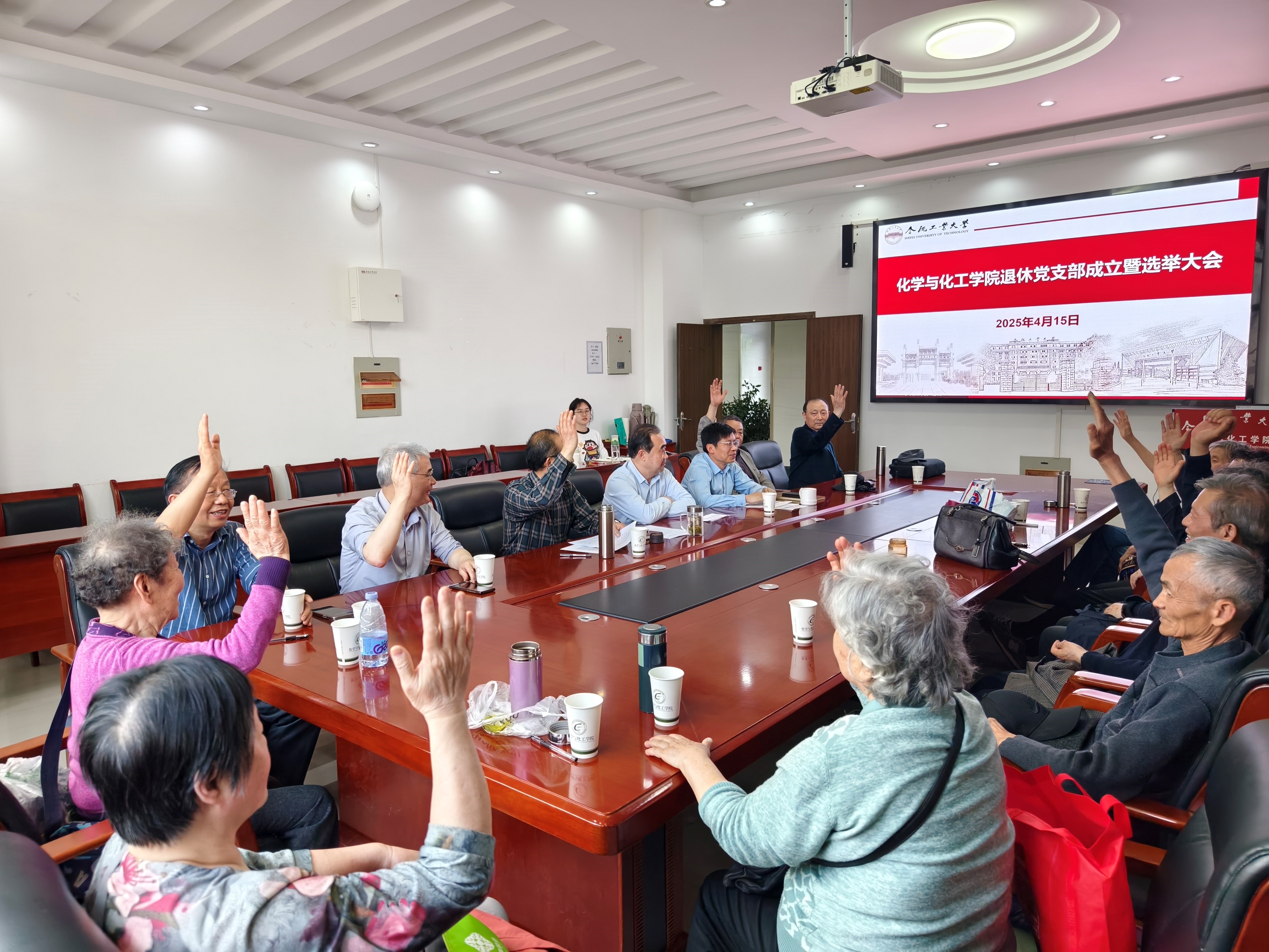 4月15日,校党委离退休工作部党委和化学与化工学院党委在升华楼201会议室召开化学与化工学院退休党支部成立仪式,并组织支委选举。校党委离退休工作部党委书记黄辉、化学与化工学院党委副书记兼纪委书记张金锋出席会议,化学与化工学院退休党员教师参加会议。