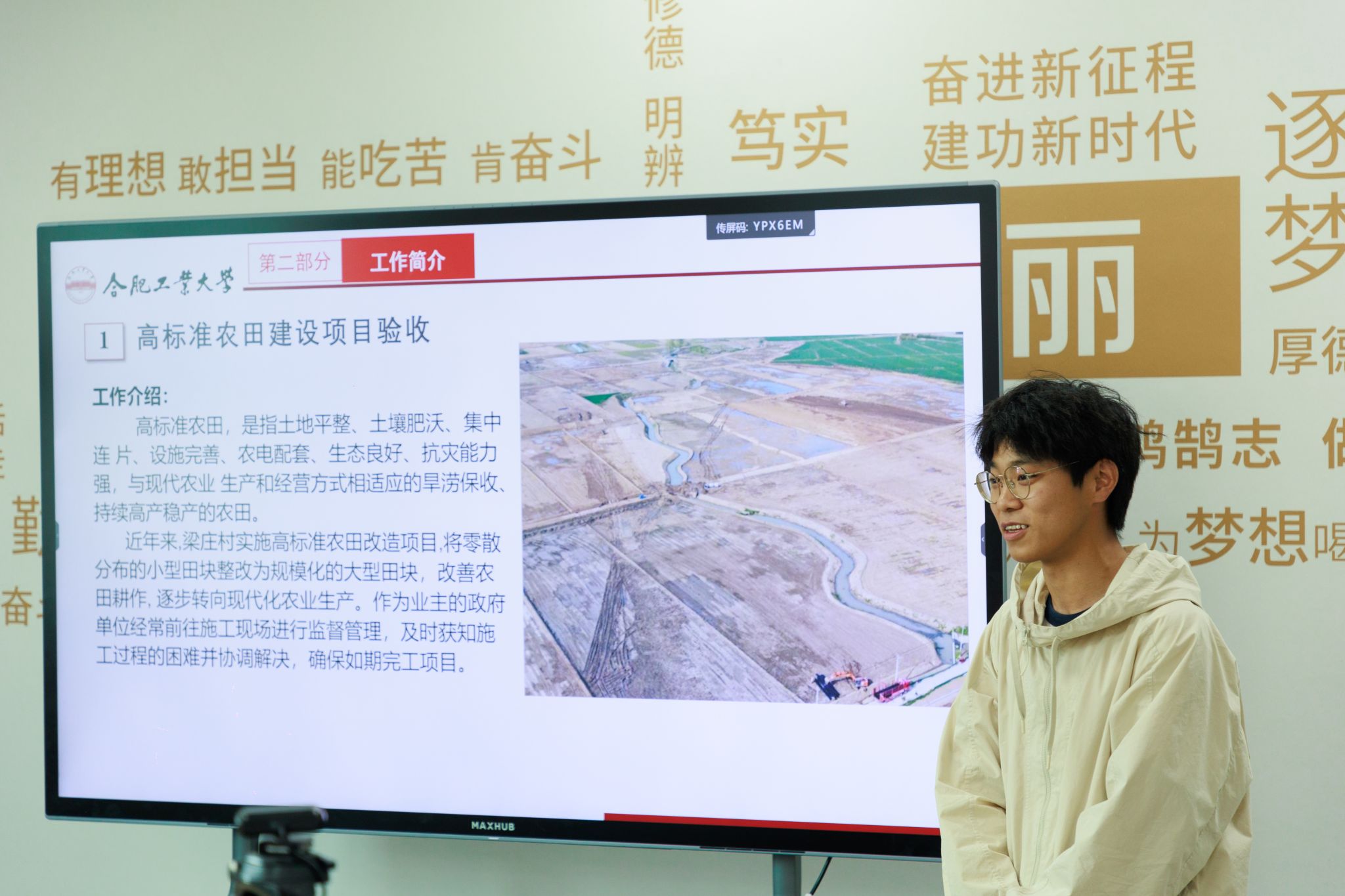 分享会上,三位志愿者结合自身经历,用真挚的语言展现了服务基层的青春画卷。2024届管理学院毕业生时慧芳扎根安徽省肥西县花岗镇民政办,担任民生保障“守护人”,高效完成医疗救助、特困人员补助发放等工作,用专业能力为困难家庭托底护航;数学学院毕业生陆银洁在合肥上派镇化身民情“解忧人”,从方言沟通“新手”成长为群众信赖的调解员,在基层琐事中读懂民生温度;土木与水利工程学院毕业生周浩作为安徽长丰县双墩镇农业振兴“践行者”,深入高标准农田建设一线,以技术助力农业现代化发展。他们坦言:“基层工作虽充满挑战,但乡亲们的笑容就是最珍贵的回馈。”