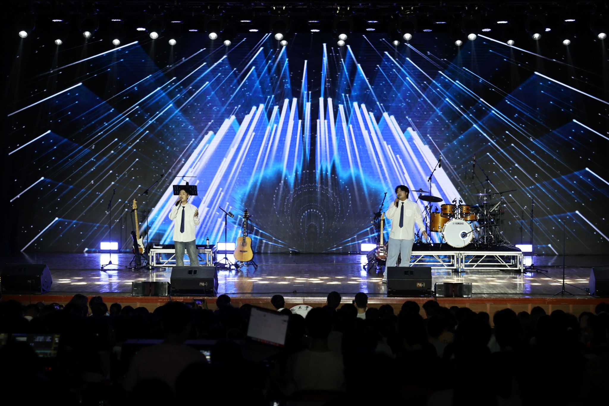 音乐会在青年学生代表的歌声中拉开帷幕。经济学院2025届毕业生潘心宇、管理学院2025届毕业生焦欣茹分别演唱了《昨日青空》《小美满》,大学生艺术团赵天佑、王录豪共同演唱《无名的人》,表达了对青春的赞美、对未来的期许。