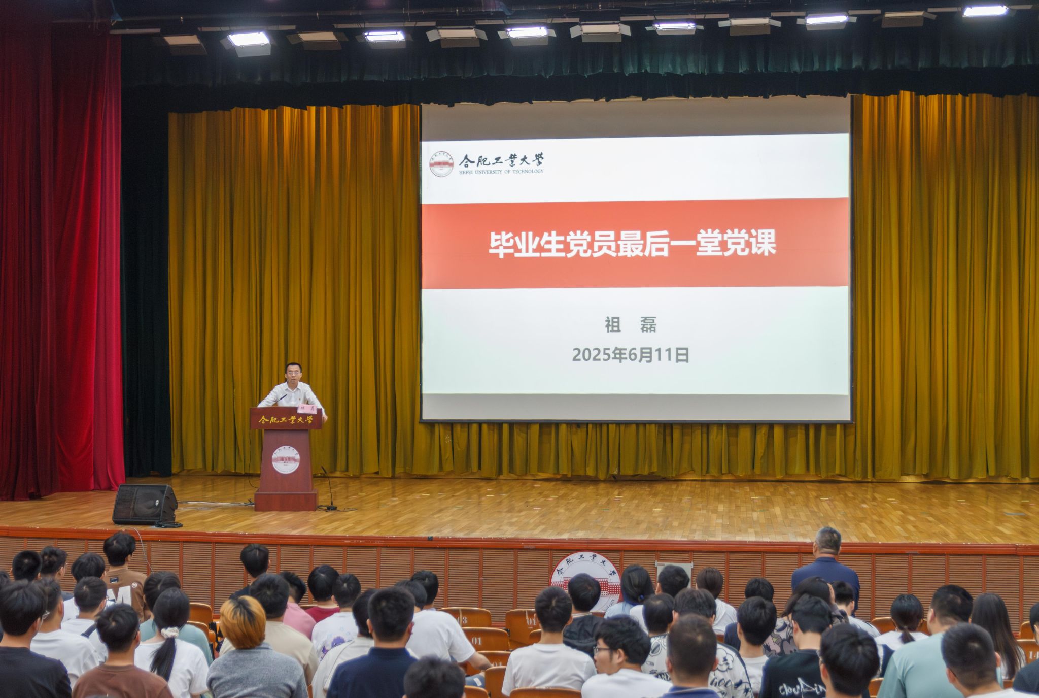 6月11日下午,机械工程学院在斛兵礼堂举行2025届毕业生党员离校前“最后一堂党课”。学院党委书记祖磊以“深入贯彻中央八项规定精神,筑牢党员作风根基”为题主讲,学院相关负责老师及全体2025届毕业生党员200余人参加。