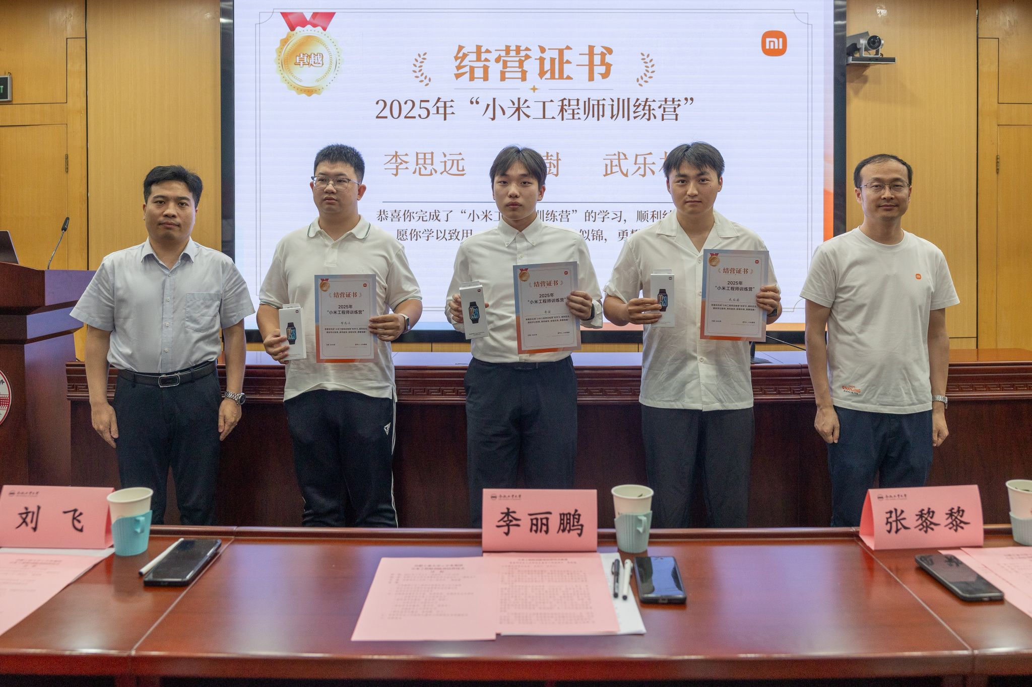 李丽鹏代表学校向小米集团一行表示热烈欢迎,向小米集团对我校育人事业的支持表示诚挚感谢,向学员所取得的优异成绩表示祝贺。他说,学校聚焦国家智能制造产业发展需求,积极推进新时代高校“智驱领航”育人共同体建设,通过探索“政产学研会”协同育人机制,构建“教育链-产业链-创新链”深度融合的一体化育人生态,为助力中国智造储备高素质领军人才。此次全国首个“小米硬件工程师”训练营的举办,正是学校推进“智驱领航”育人共同体建设的重要举措,不仅搭建了校企协同育人的示范性平台,更为双方未来合作奠定了坚实基础。