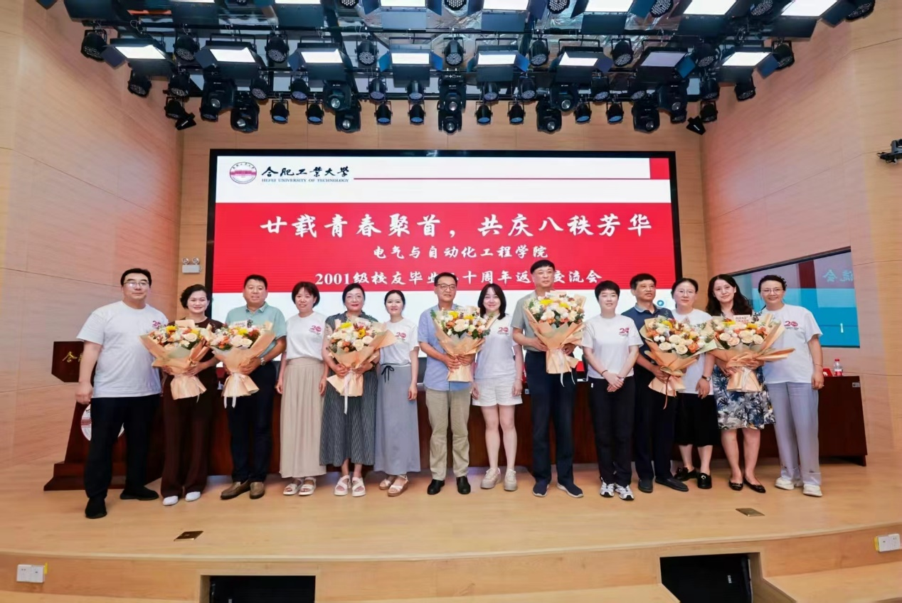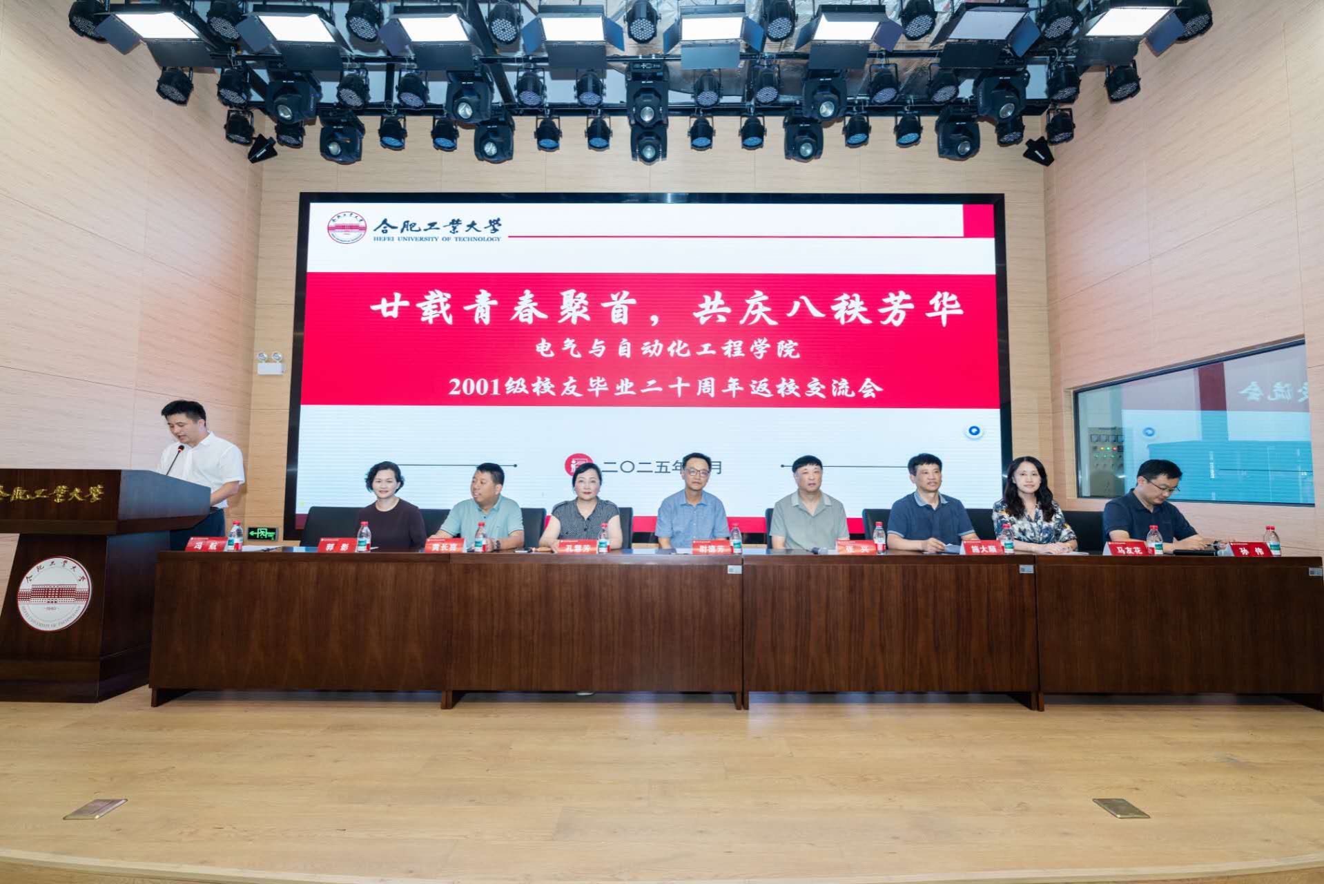 8月2日,电气与自动化工程学院2001级校友毕业二十周年返校交流会在屯溪路校区举行。学院副院长孙伟,学院原党委副书记尉德芳,教师代表张兴、孔慧芳,2001级辅导员施大顺、黄长喜、马友花和2001级班主任代表郭影来到现场,与260余位校友共叙廿载师生情。会议由学院党委书记冯航主持。