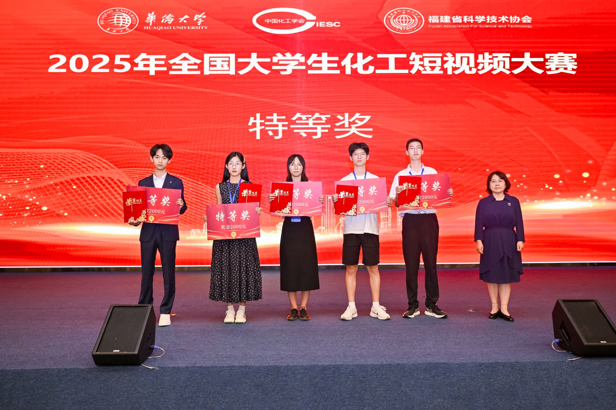 全国化工短视频大赛由中国化工学会主办,自创办以来,已成为化学工程学科与现代传播技术深度融合的重要平台。大赛旨在为广大青年学子提供一个展示创新思维和实践能力的舞台,推动化学工程学科的普及与发展,激发更多青少年对科技创新的热情。本届大赛由华侨大学、福建省化工学会联合承办,福建省科学技术协会指导,福建永荣科技有限公司支持,以“短视频+化工科普”的创新模式,增强社会对化工行业的认知,促进青年一代对绿色发展、可持续发展等领域的关注,为未来的科技发展储备创新力量。本届大赛吸引了全国63所高校的139支队伍参与,经初赛专家函评、网络公众投票两阶段遴选,最终80支队伍脱颖而出,进入决赛阶段。在决赛中,参赛选手们通过短视频展示了化工学科的前沿技术和创新应用,充分展现了青年学子们的创意与活力。决赛最终评选出特等奖5项,一等奖10项,二等奖20项,三等奖45项,优秀组织单位10个,优秀指导教师20名。