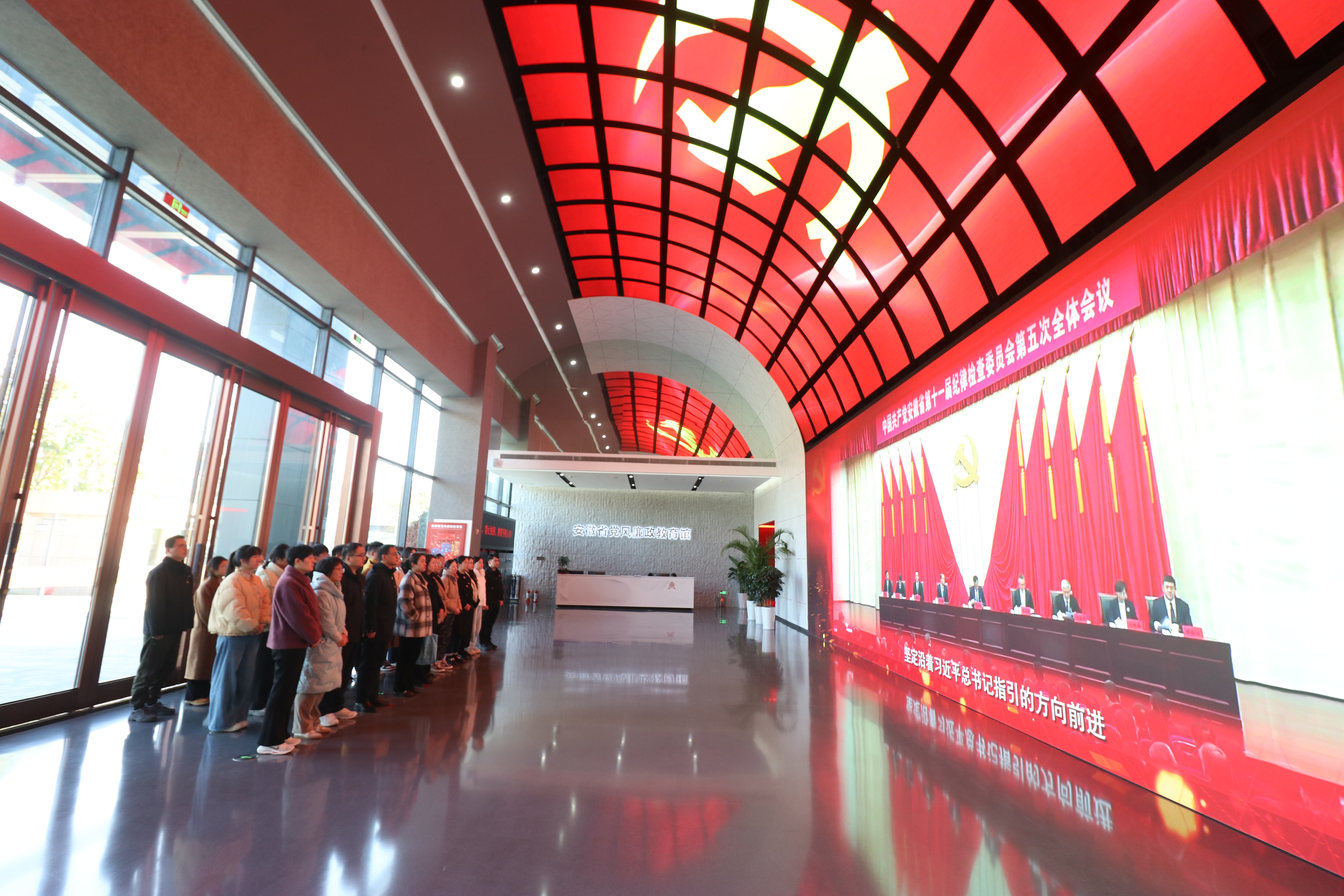 在庄重肃穆的教育馆内,全体参训师生依次参观了“纪律立党 从严治党”、“廉润江淮 清风扬帆”、“以案为鉴 警钟长鸣”、“不忘初心 永葆清廉”四大主题展厅。通过图文资料、案例剖析与影像展示,重点学习近年典型违纪违法案件,直观感受“贪廉一念间,荣辱两世界”的深刻内涵,接受深刻廉政洗礼。