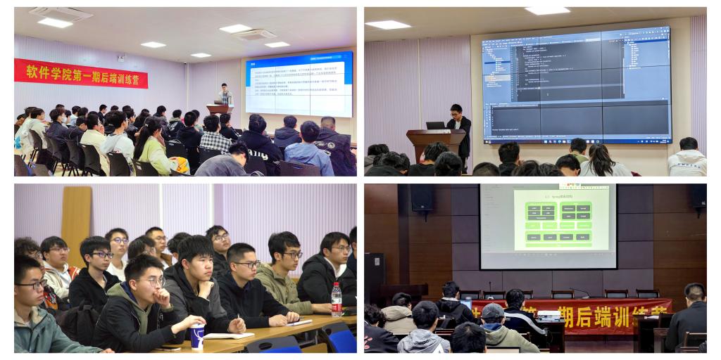 培训期间,专业导师和朋辈讲师们,课件准备充分,授课条理清晰,对学员们认真负责;学员们做到课上认真听讲、仔细记录,课后围绕知识点进行有针对性的集中学习和小组讨论。每场活动后,主讲老师都与同学们进行互动交流,回答同学们关于后端学习的相关问题。同学们纷纷表示老师们讲解的内容干货满满,让人受益匪浅,讲解态度温和亲切,有问必答,活动中受益匪浅。软件工程21-2班黄钲同学说:“在本次后端训练营中,我系统化地学习到了后端开发的相关知识和实用技能,让我对后端开发以及软件工程专业有了更深入的理解。作为大学生,我们应该努力学习专业知识,提升自身的能力,努力为国家做出更大的贡献。”软件工程21-2班王嘉毅同学说:“参加后端训练营是我大学生涯中的一次宝贵经历。通过系统的学习和实践,我深入了解了后端开发的关键概念和技术,并且获得了宝贵的实战经验。与同学们的交流和合作让我更加深刻地理解了团队合作的重要性。”