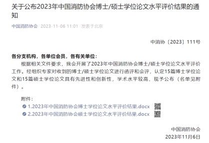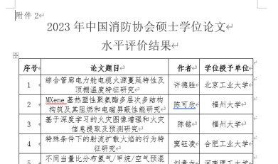 据悉,中国消防协会优秀博士/硕士学位论文每年评选一次,每次评选出的博士/硕士学位论文均不超过15篇,或不超过20%。入选的博士/硕士学位论文通常为本学科前沿、具有开创性、突破性理论成果,达到国内或国际同类领域的领先水平、具有较好社会效益或应用前景的文章。 成立于1984年9月的中国消防协会(China Fire Protection Association,CFPA),是由消防科学技术工作者、消防专业工作者和消防科研、教学、企业单位自愿组成的学术性、行业性社会团体,其业务由中国科学技术协会主管。