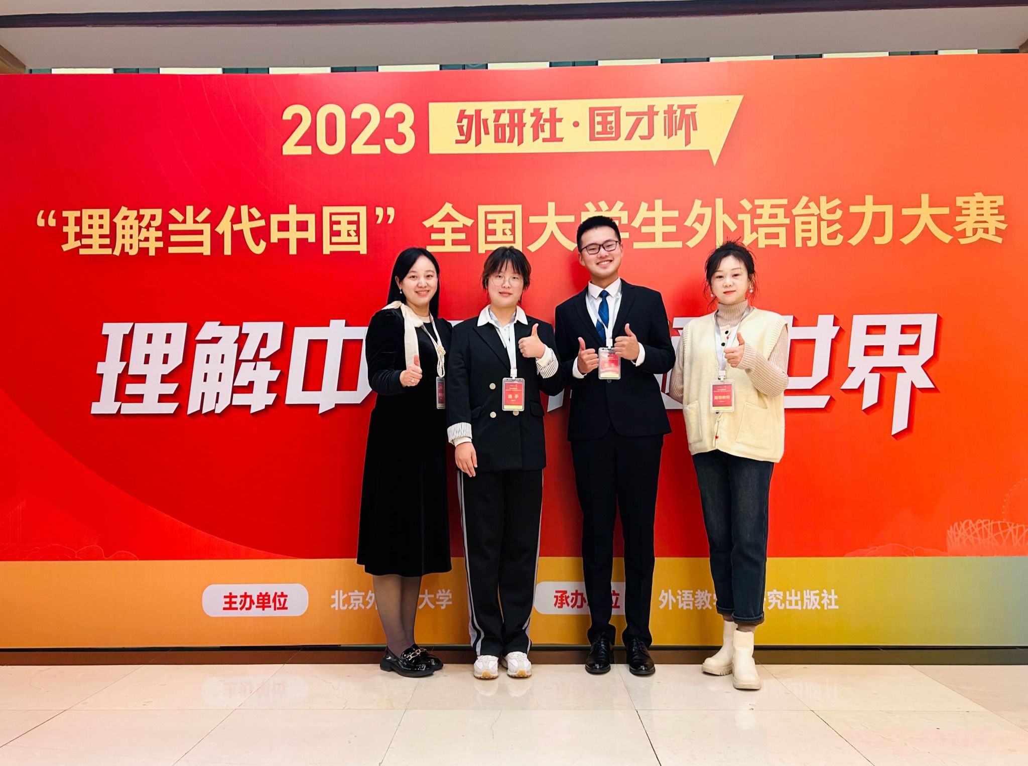 “外研社·国才杯”“理解当代中国”全国大学生外语能力大赛是入选教育部中国高等教育学会发布的《2023全国普通高校大学生竞赛分析报告》竞赛目录的重要赛事,大赛的专业性与权威性得到高校师生的广泛认可。此次大赛以“理解中国,沟通世界”为主题,引导选手们理解中国之路、中国之治、中国之理。大赛为大学生打造了一个展现风采、实现自我的赛事平台,也为我国高等外语教育营造了凝聚创新、融通中外的交流平台。我校选手在本次比赛中热情饱满,奋勇争先,取得了骄人成绩,充分展现了他们过硬的外语能力、跨文化能力、思辨能力、创新能力等综合素养。学子们激扬文字、挥斥方遒,显现了其志存高远、昂扬奋发的精神面貌,更反映出我校在外语教育改革创新与落实思政育人方面的显著成效。