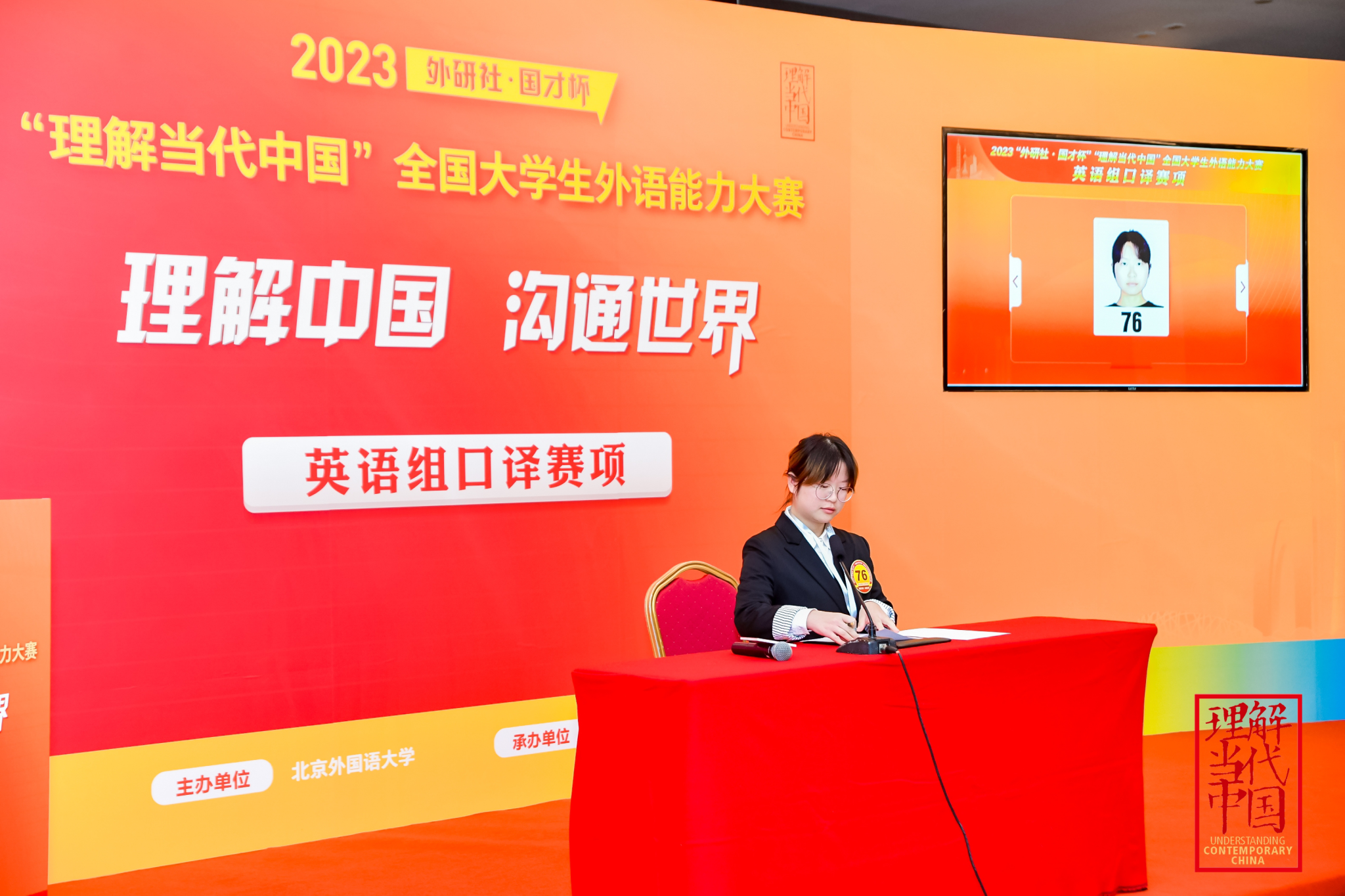 吴心悦同学(黄娟老师指导)在英语口译国赛现场