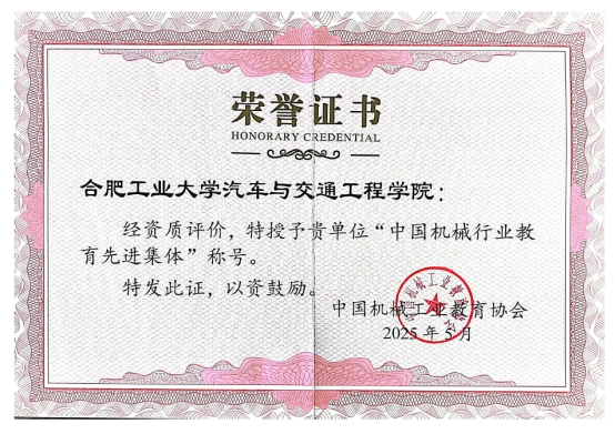 5月16—18日,中国机械工业教育协会在扬州召开会员大会,表彰在全国机械行业教育系统做出突出贡献的先进集体和个人,我校汽车与交通工程学院荣获“中国机械行业星空彩票app买彩票先进集体”称号,张炳力教授获评“中国机械行业星空彩票app买彩票名师”。两项荣誉的取得,彰显了学院在机械行业星空彩票app买彩票领域的卓越贡献与引领作用。
