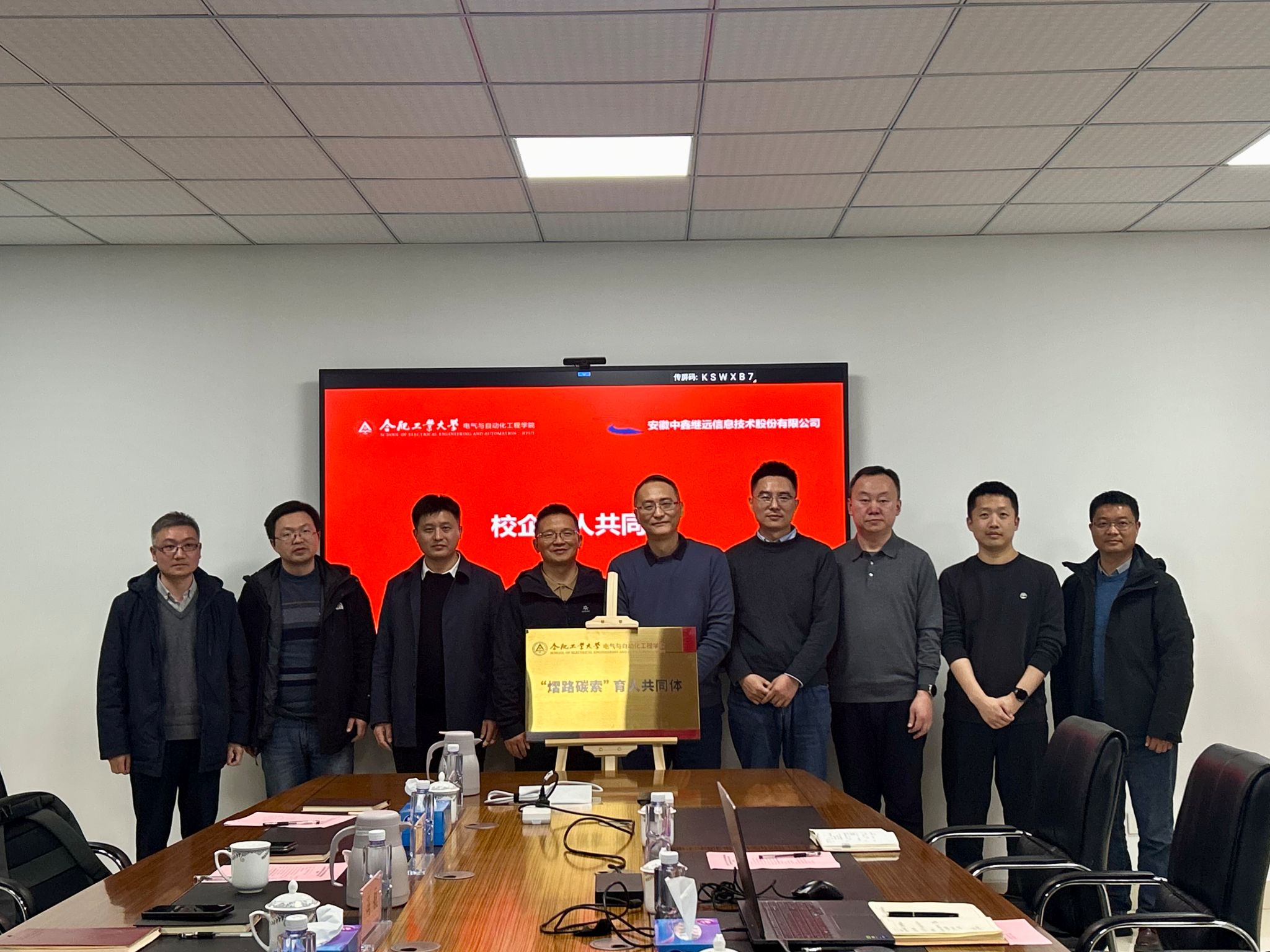 为深化产教融合,共育高素质人才,12月4日下午,电气与自动化工程学院赴安徽中鑫继远信息技术股份有限公司参观交流,并举行“熠路碳索”育人共同体揭牌仪式,公司、学院相关负责同志及部分骨干教师代表参会。