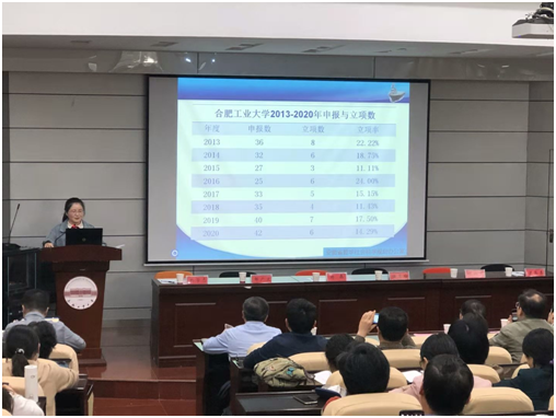 在嘉宾报告环节,安徽省哲学社会科学规划办公室强惠玲主任系统梳理了各类项目的历史数据趋势以及省内各高校的横向对比,并从项目基本情况、申报和结项注意事项等三个方面做了详细的报告,包括活页填写、经费列支、免鉴条件等经常遇到的问题,为现场老师们做出了详尽的解释和解答。