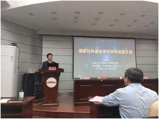 南京大学吴福象教授以自己的研究成果及获批的相关项目为例对国家社科基金的申报做了经验分享的报告。他指出,社科项目申报选题是非常重要的,课题论证应注意表达清楚,并注意突出思路的论证;在表述研究现状时,应准确深入、具体简明,避免定位不准、主题不明等问题;研究成果与课题应紧紧相连。他同时强调学术论文的积累对项目申报的重要性,在积累学术论文的过程中不仅能拓宽视野,还能产生深刻的启发。